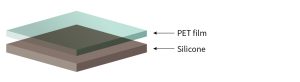 Single sided Solicone adhesive with PET film as carrier and PET release film as liner;